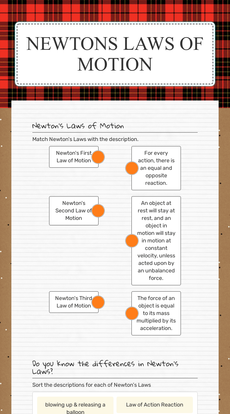 Sure, sitting down to work out some problem sets can be fun, but why not fling some stuff across the room in the name of scie. Newton's three laws of motion describe movement for all things on earth, and helped to define humankind's understanding of physics. The law of interaction is the name given to sir isaac newton's third law of motion, which holds that an interaction between two objects brings creates an equal and opposite reaction. Read full profile sir isaac newton was an amazing scientific theorist — so amazing, in fact, that he doubled as a produc. Newton's laws of motion are fun when learning with these free printable worksheets that include a word search, crossword, and a coloring page.
